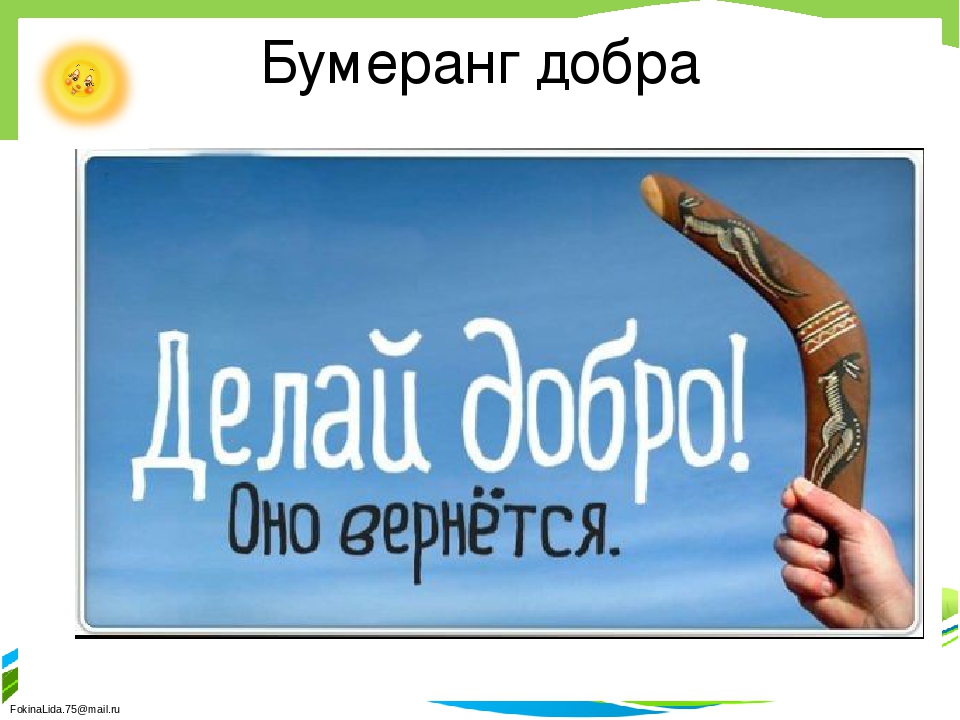 Запустите свой «бумеранг доброты» и он обязательно к вам вернется теплыми словами благодарности и сердечной добротой!
